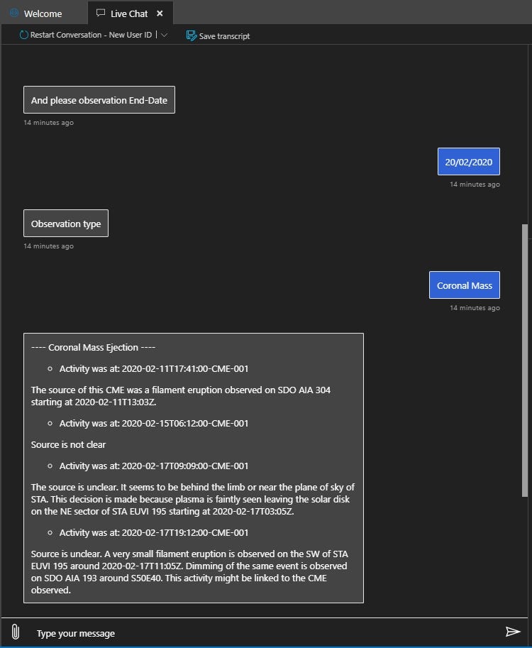 In this article, I build a simplified version of a Bot that aggregates data from NASA API and provides the user with a simple workflow and short data feedback. Also, I use Azure Language Recognition (LUIS) service to improve and simplify the conversation flow.